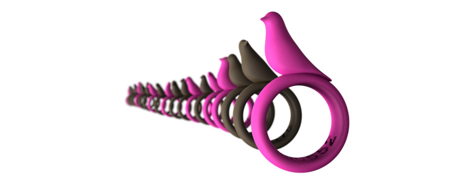 I was really excited when Michiel Cornelissenasked me to help him create just such a product. He brought his One In A Million Bird design to me (already in a 3D file), and his ideas on what the extremes of the variations should be. For instance how far the bird was allowed to turn his head left, or how small or large a bird could be. I then set up a system using thepython programming language inside Blender 3D that could generate as many birds as Cornelissen wanted. To create all the shapes and poses of the birds the same sort of technology was used as for characters in animated movies (for instance Sintel). Not only that, but every version got a unique code on the inside of the ring. Every bird was stored in a database to make sure they were all indeed absolutely unique.