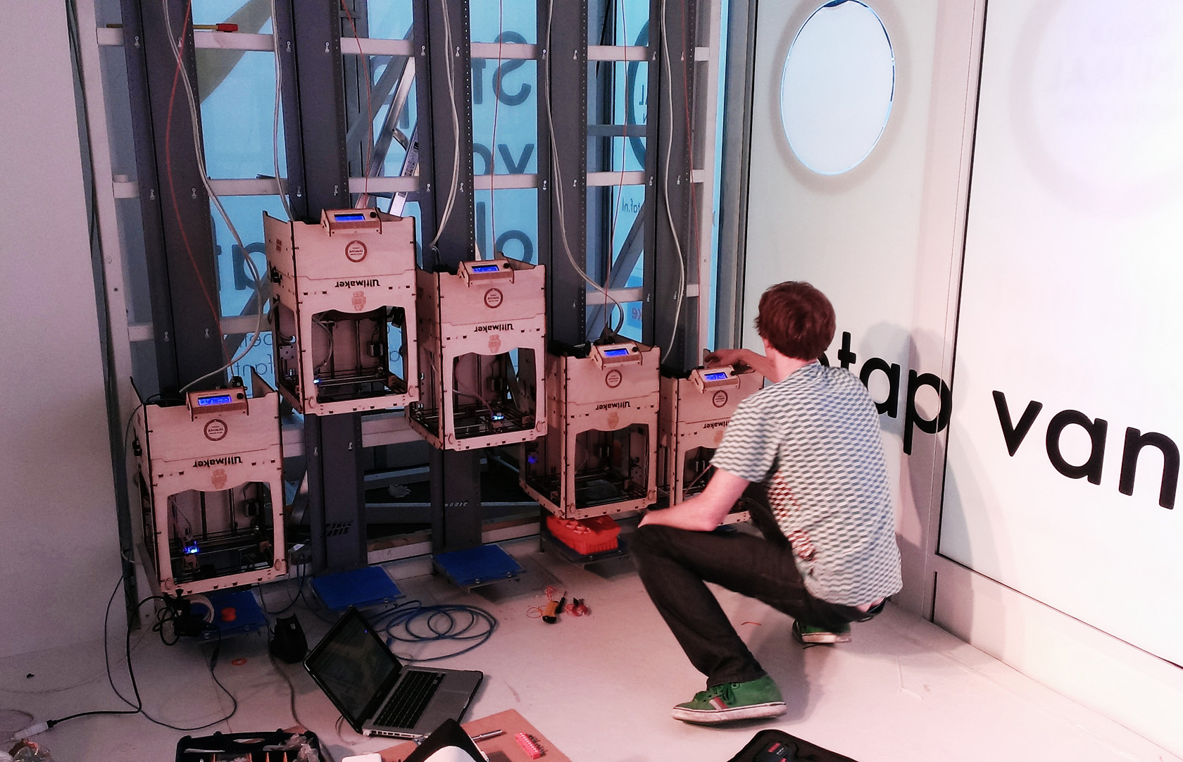 The model was created entirely in Blender 3D. The Elephant was printed in 57 vertical columns. Joris inverted 5 Ultimaker 1 3D printers and mounted them on a special system of his own design.The petition was signed by over 30.000 people. The first 20.000 had their names embedded in the actual skin of the Elephant with a special font created to mimic the folds in the skin of a real Asian Elephant.