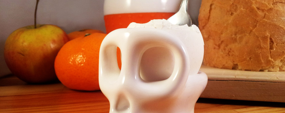 The monkey skull egg cup is a bit of an homage to a certain movie where brains were eaten straight from the cranium... yum...