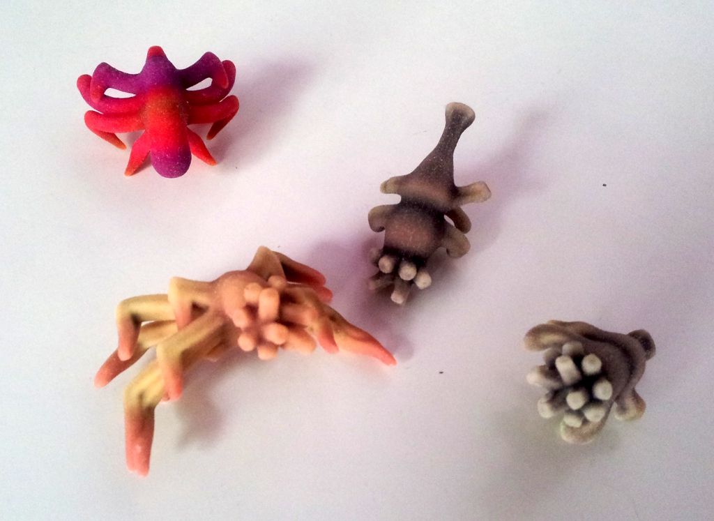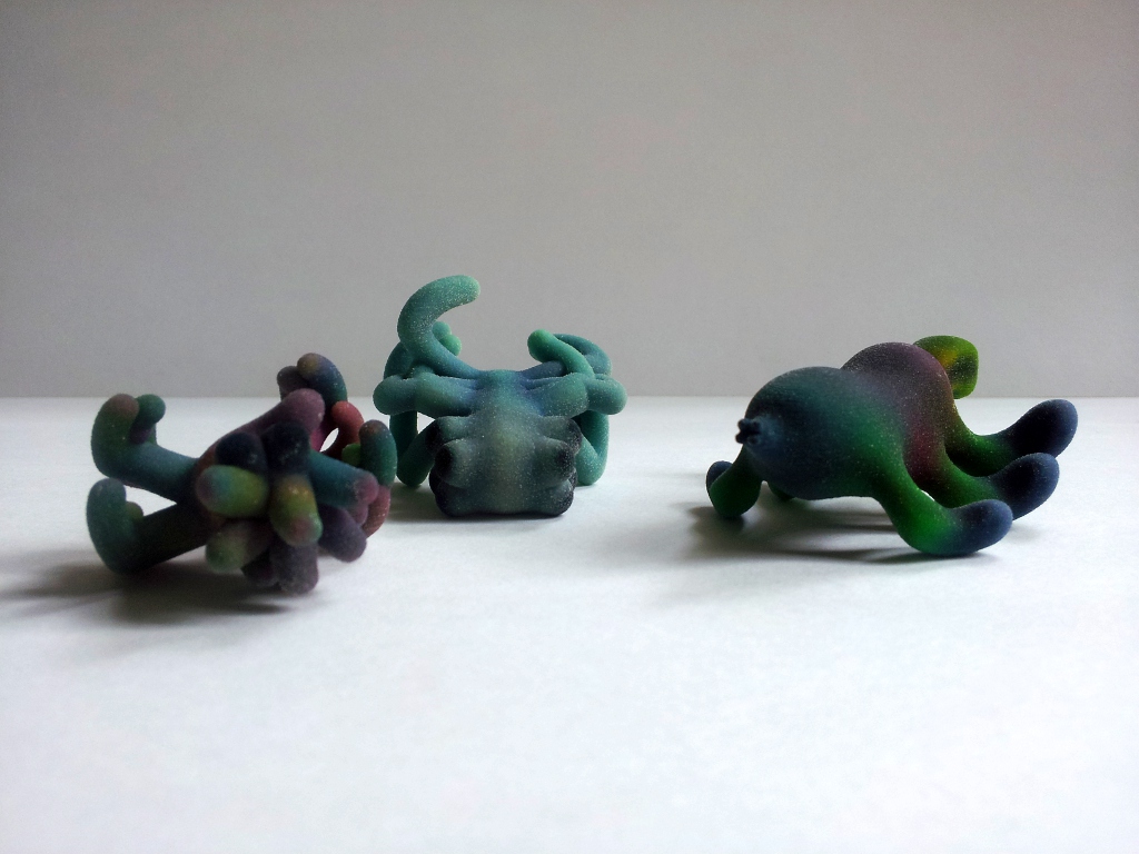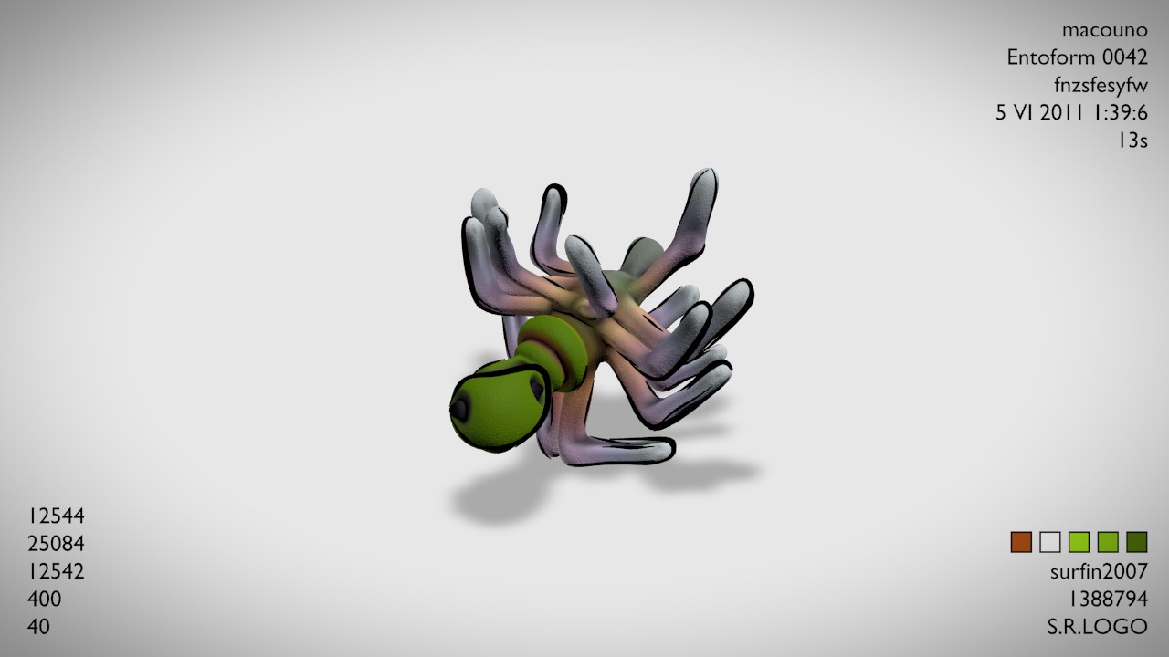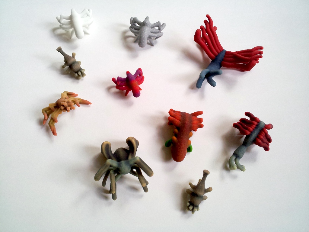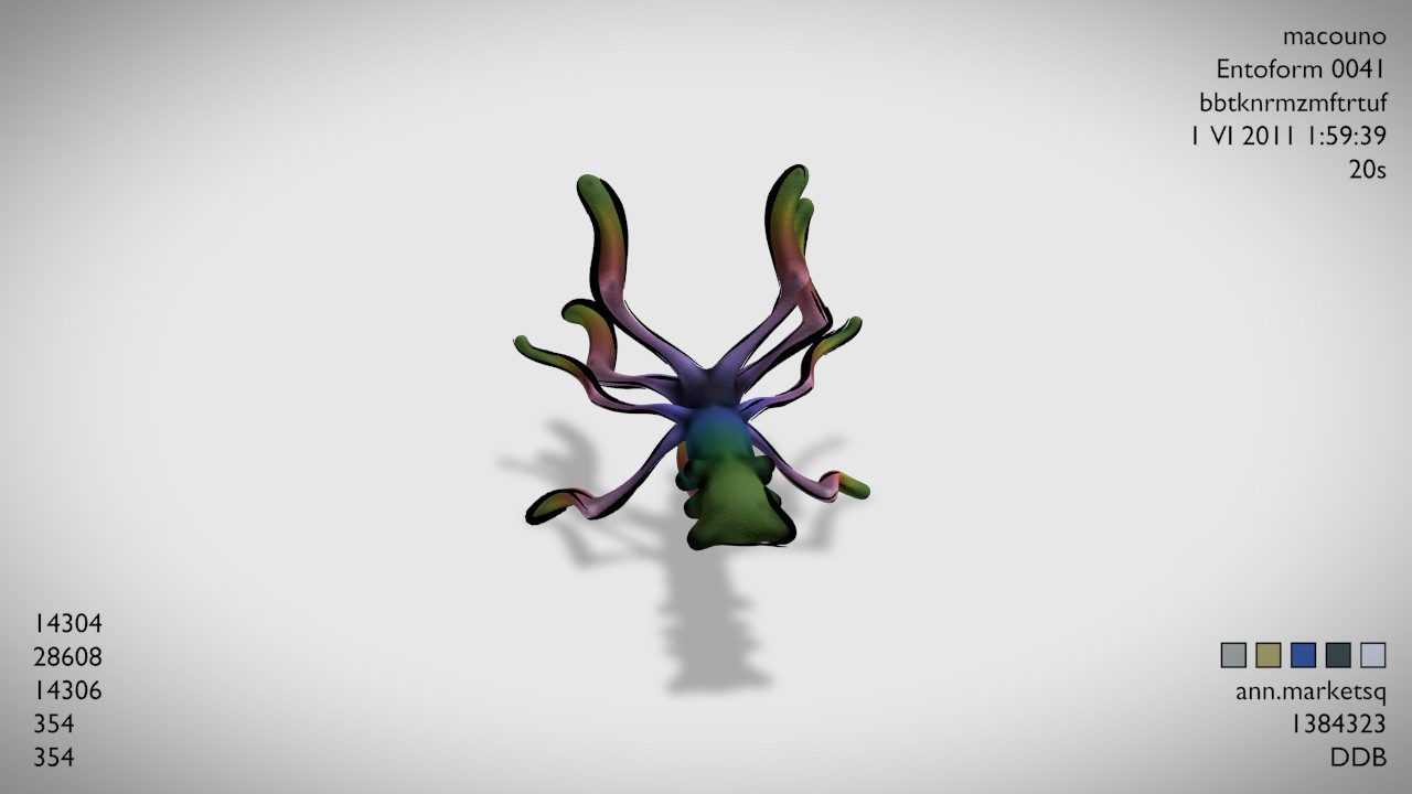 The Entoforms are a little window into that time. Fossils of the Future. They are generated by a computer program created by man (in this case me), then made physical by a full colour 3D printer. As the program evolves so do the Entoforms allowing us to look further and further ahead into what may be. And by doing so we create the tools to make/generate/grow all sorts of things.