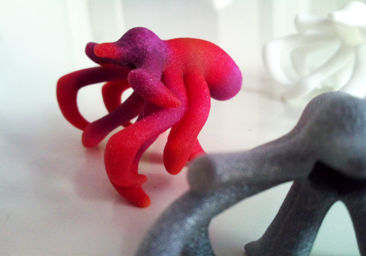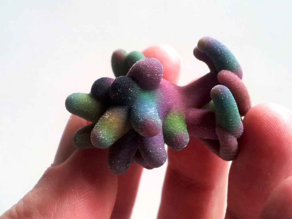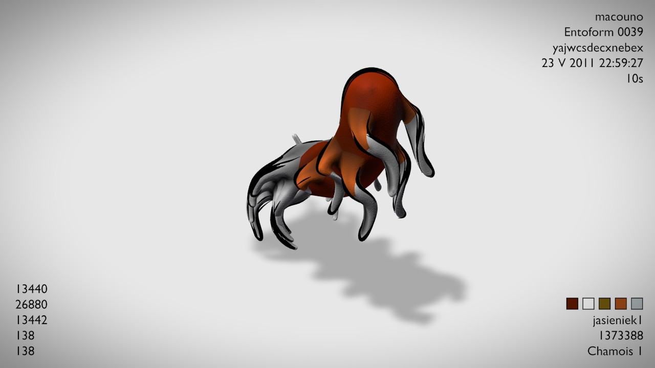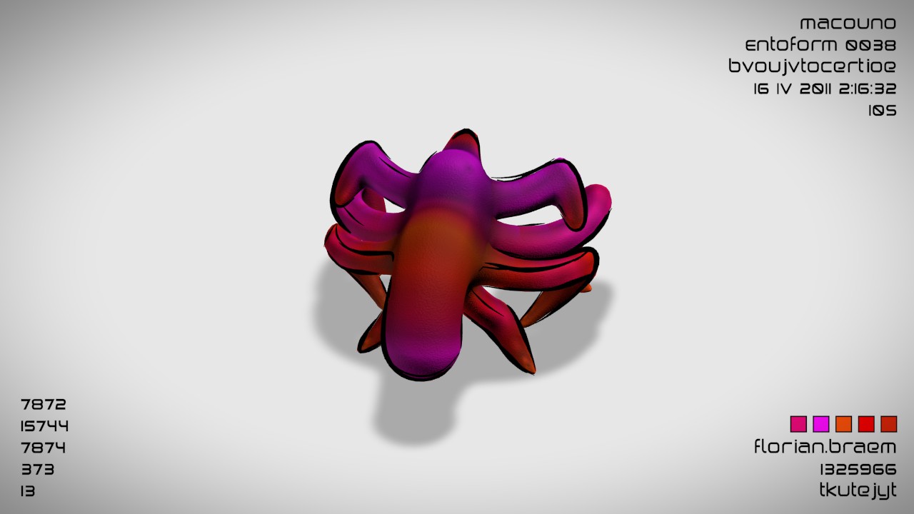 The Entoforms are a little window into that time. Fossils of the Future. They are generated by a computer program created by man (in this case me), then made physical by a full colour 3D printer. As the program evolves so do the Entoforms allowing us to look further and further ahead into what may be. And by doing so we create the tools to make/generate/grow all sorts of things.