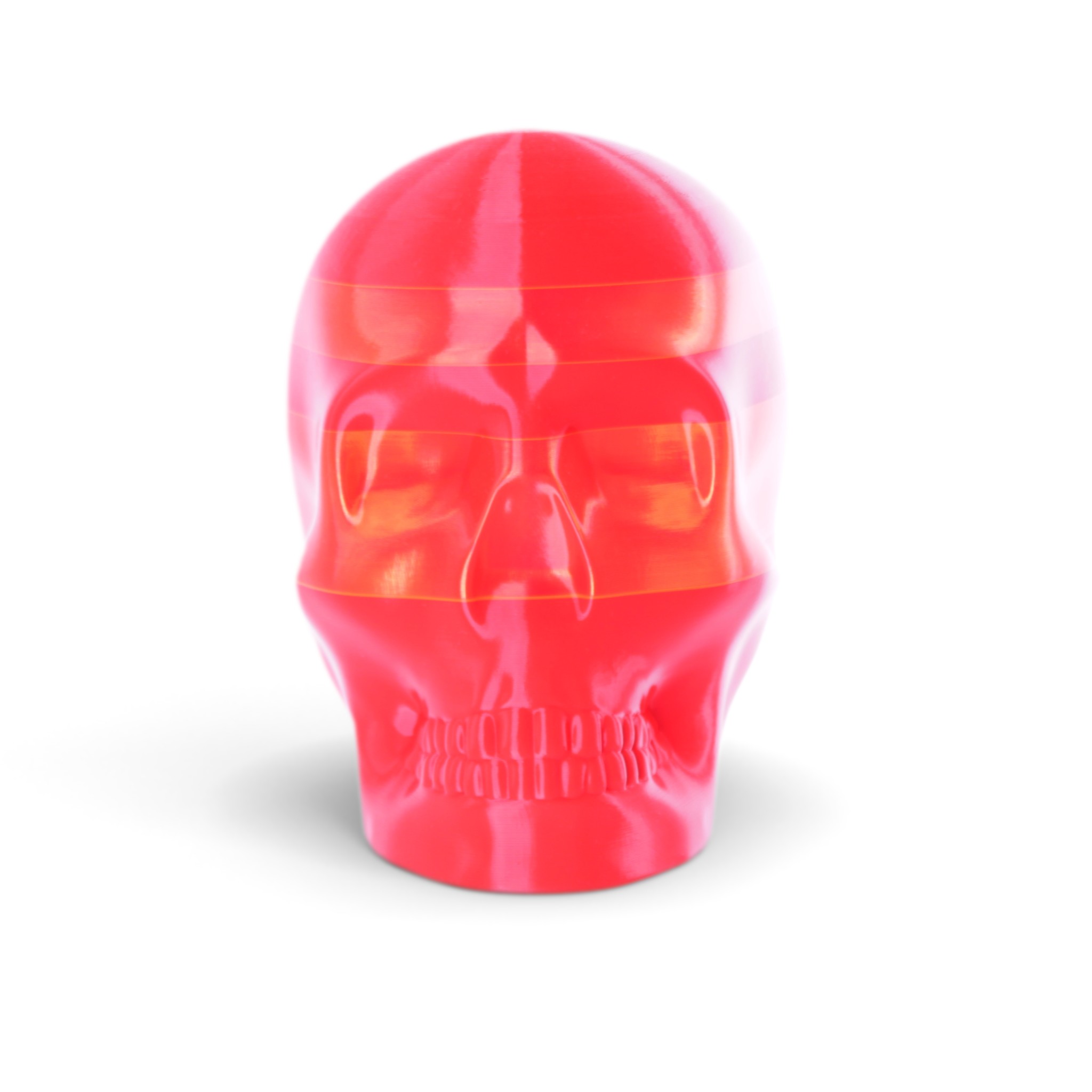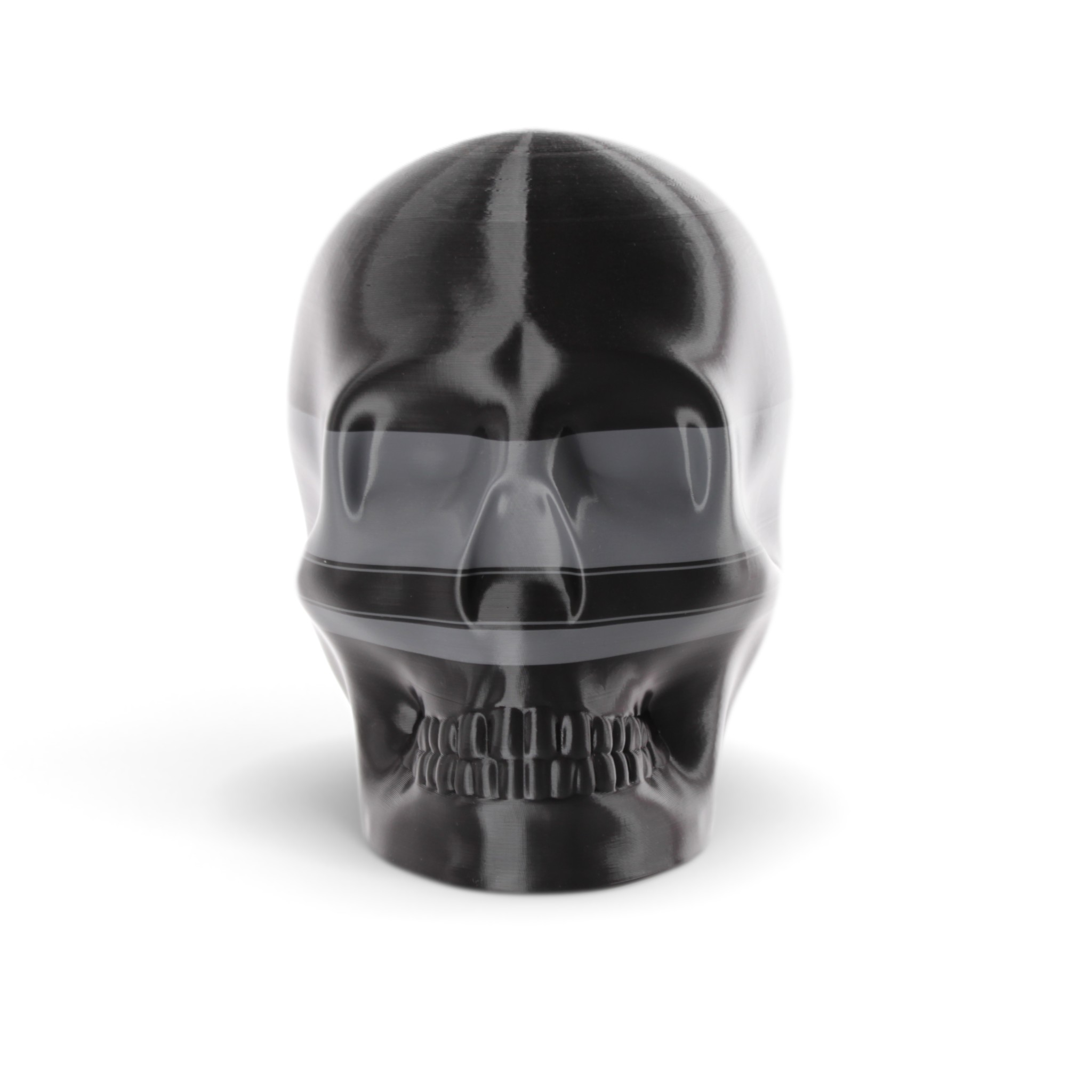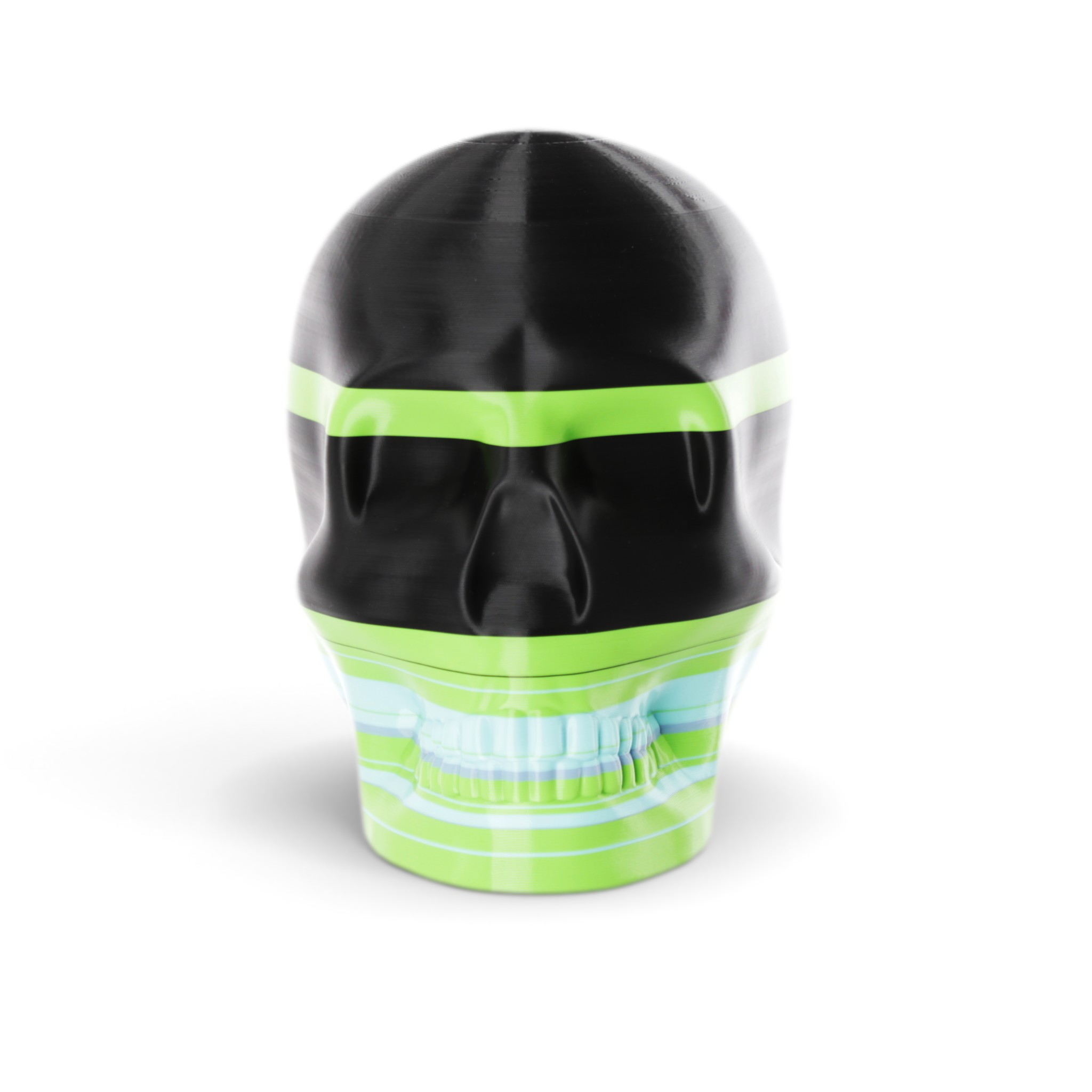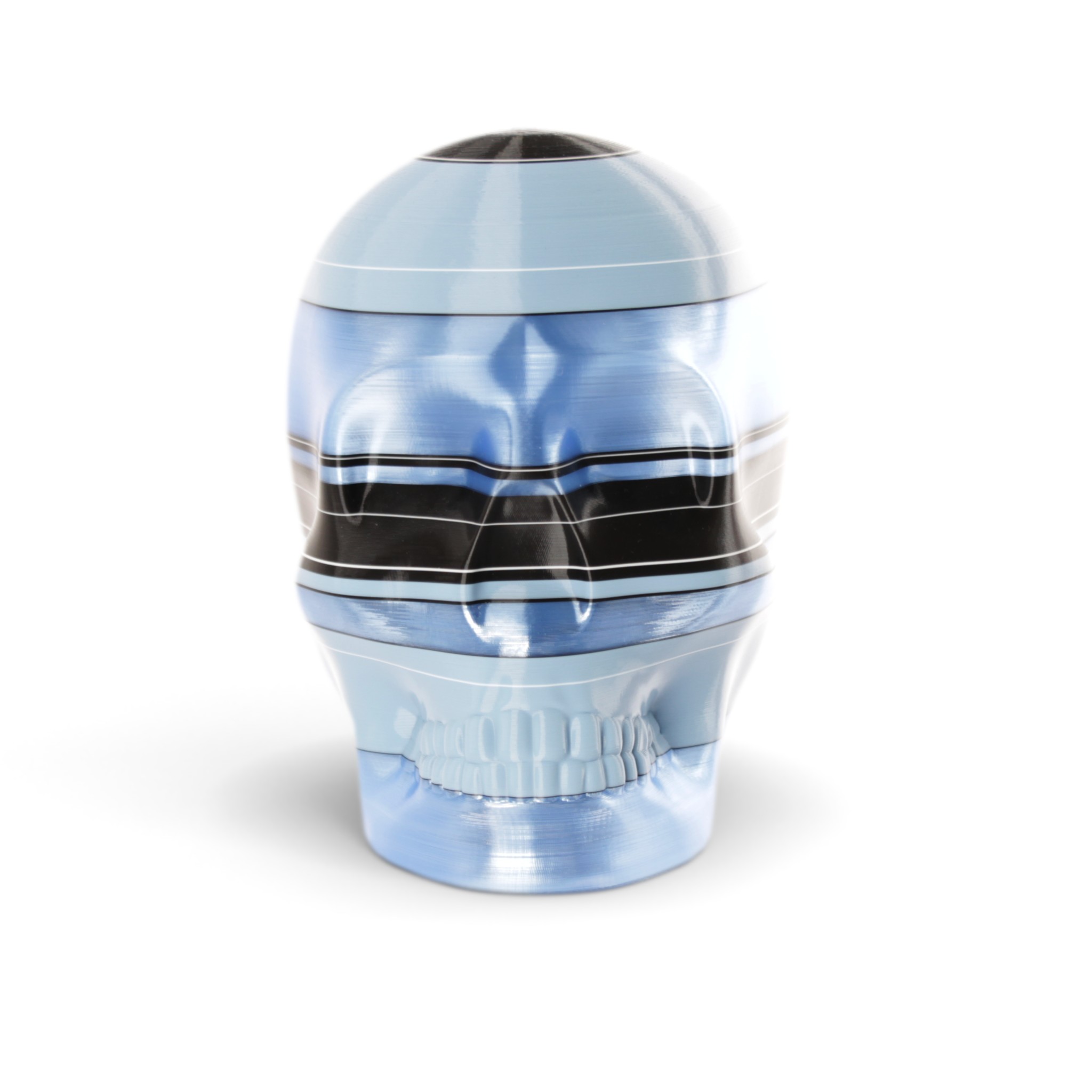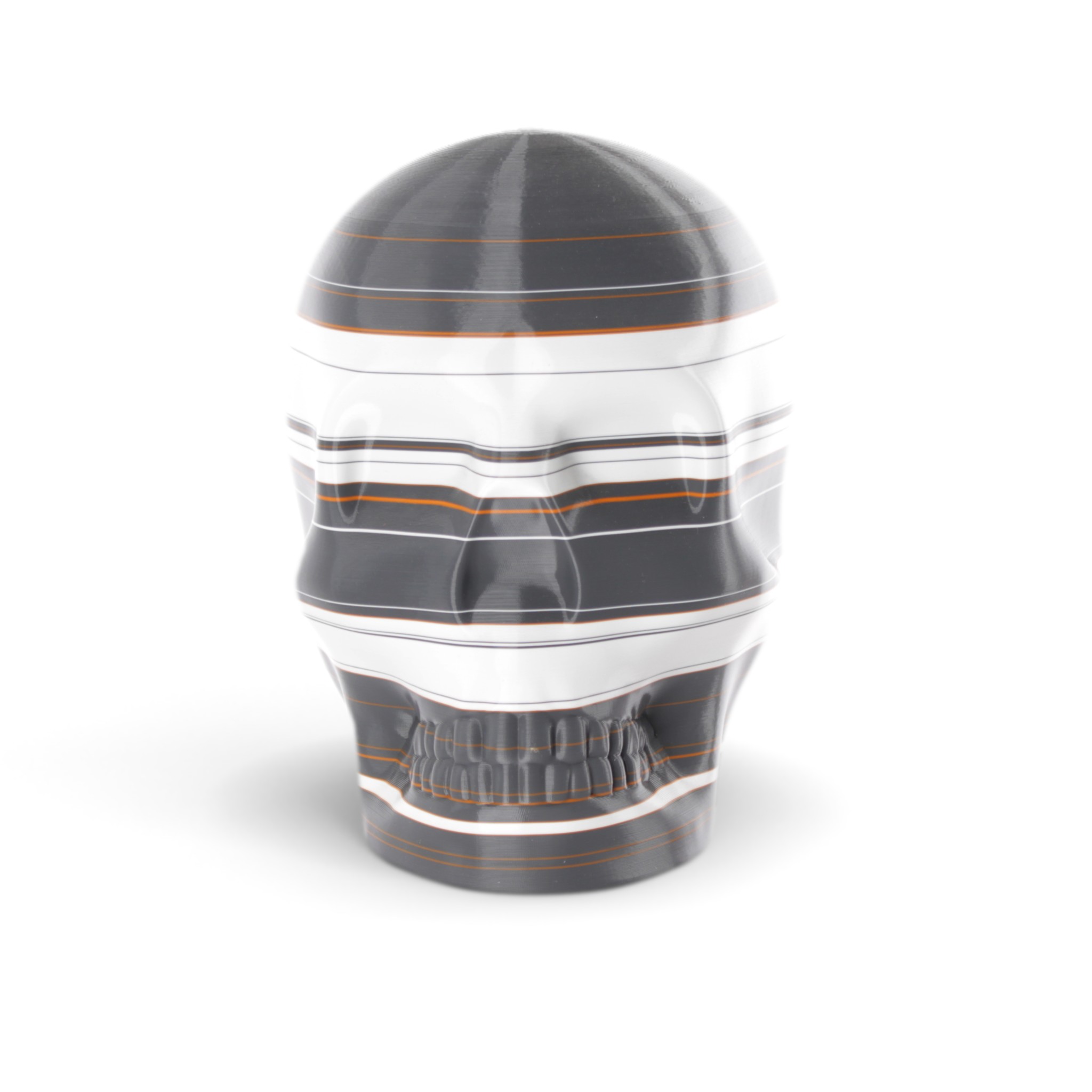 The shape in this series is a constant. Like the cups manufactured in the industrial age... they are all the same. Except with 3D printing we can customise and make every object unique... the skulls all have one of a kind colour patterns manually inserted in the 3D printing process.