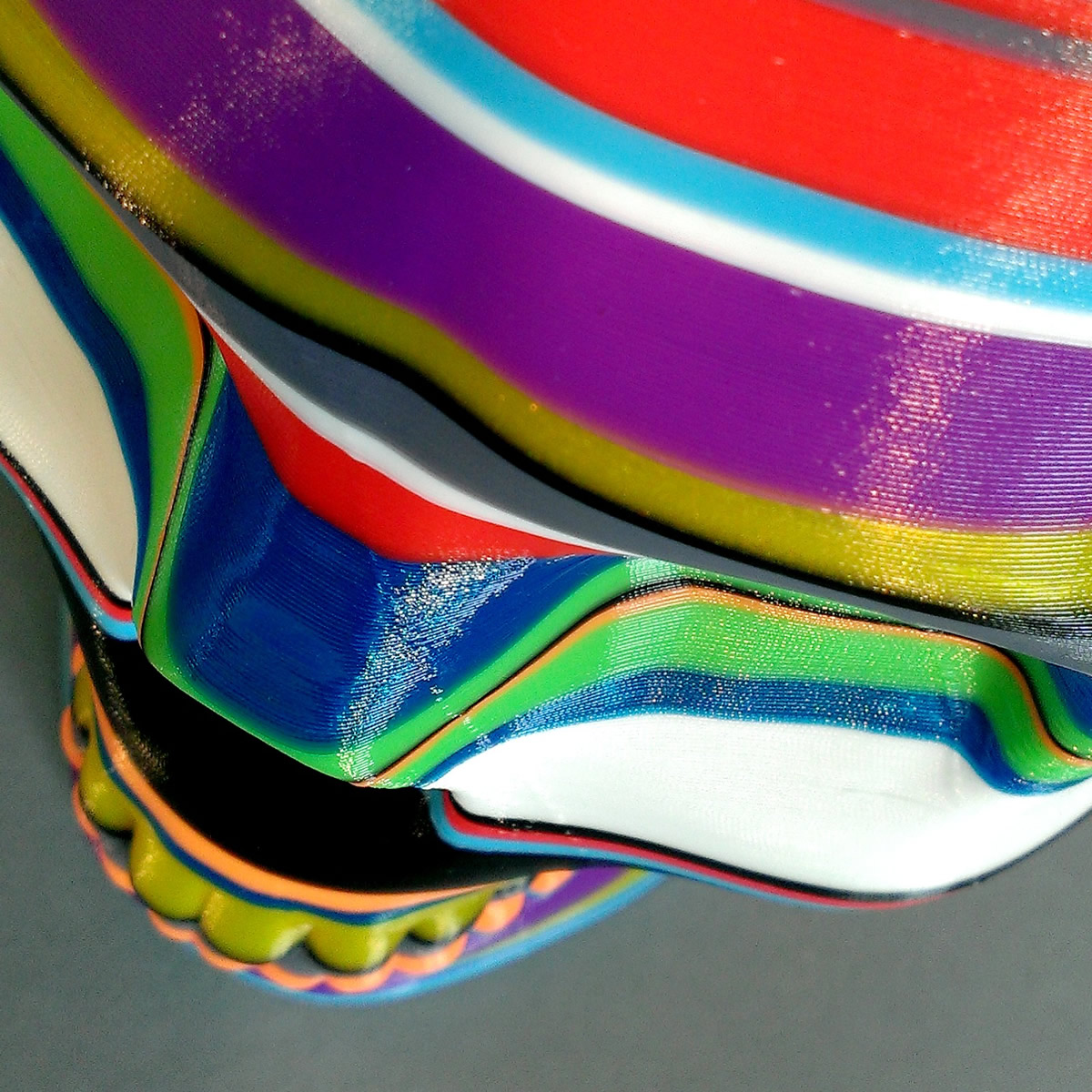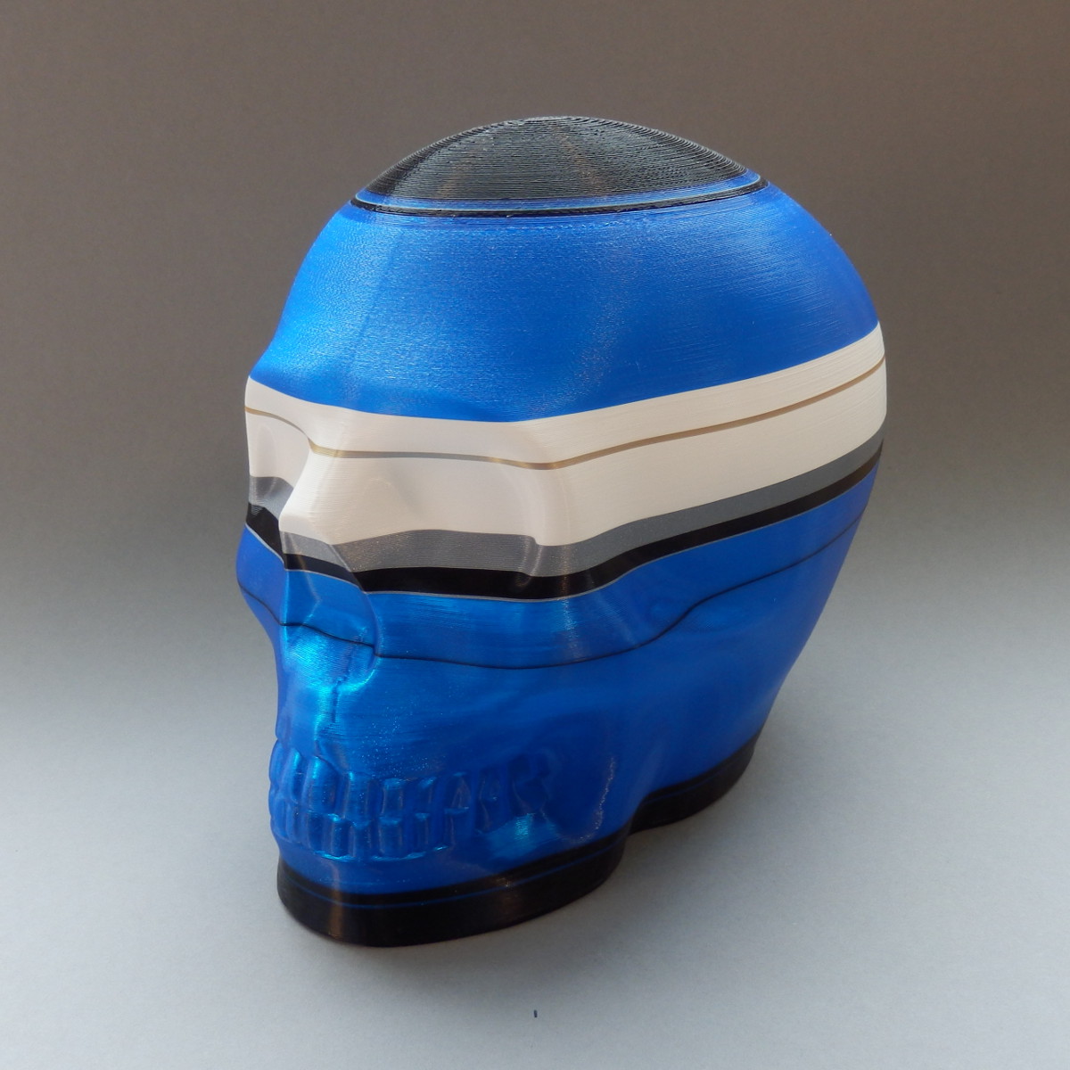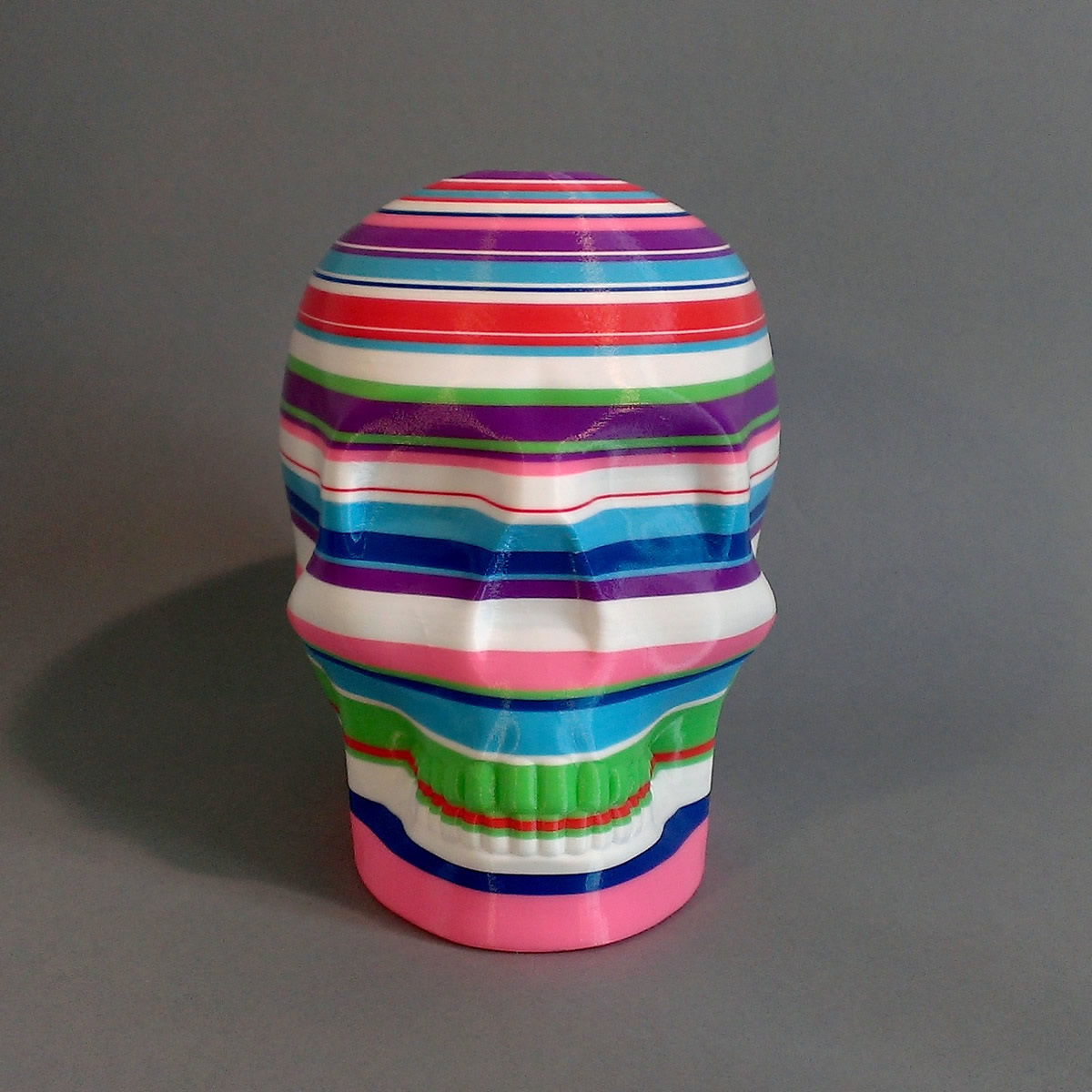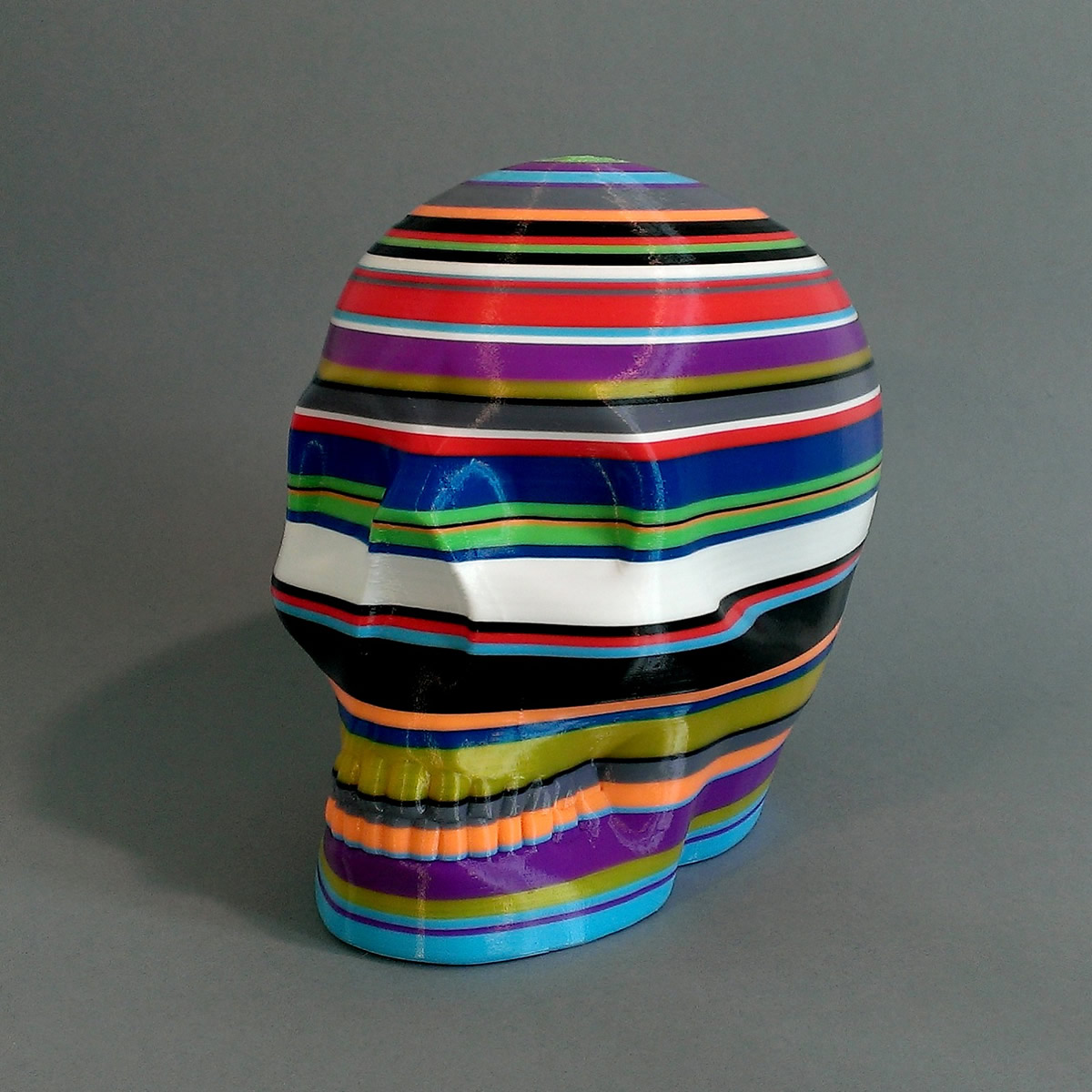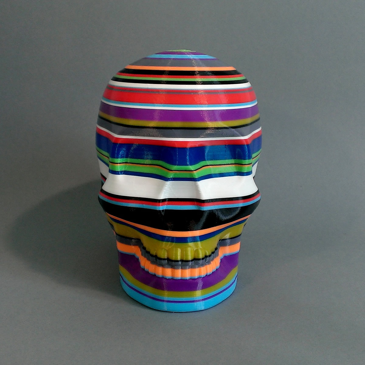 Each skull is printed on an Ultimaker 3D printer in a session of 5 hours. The printer is owned by Protospace. During the 5hr process the design is constantly reassessed and the plastic filament changed by hand when required.