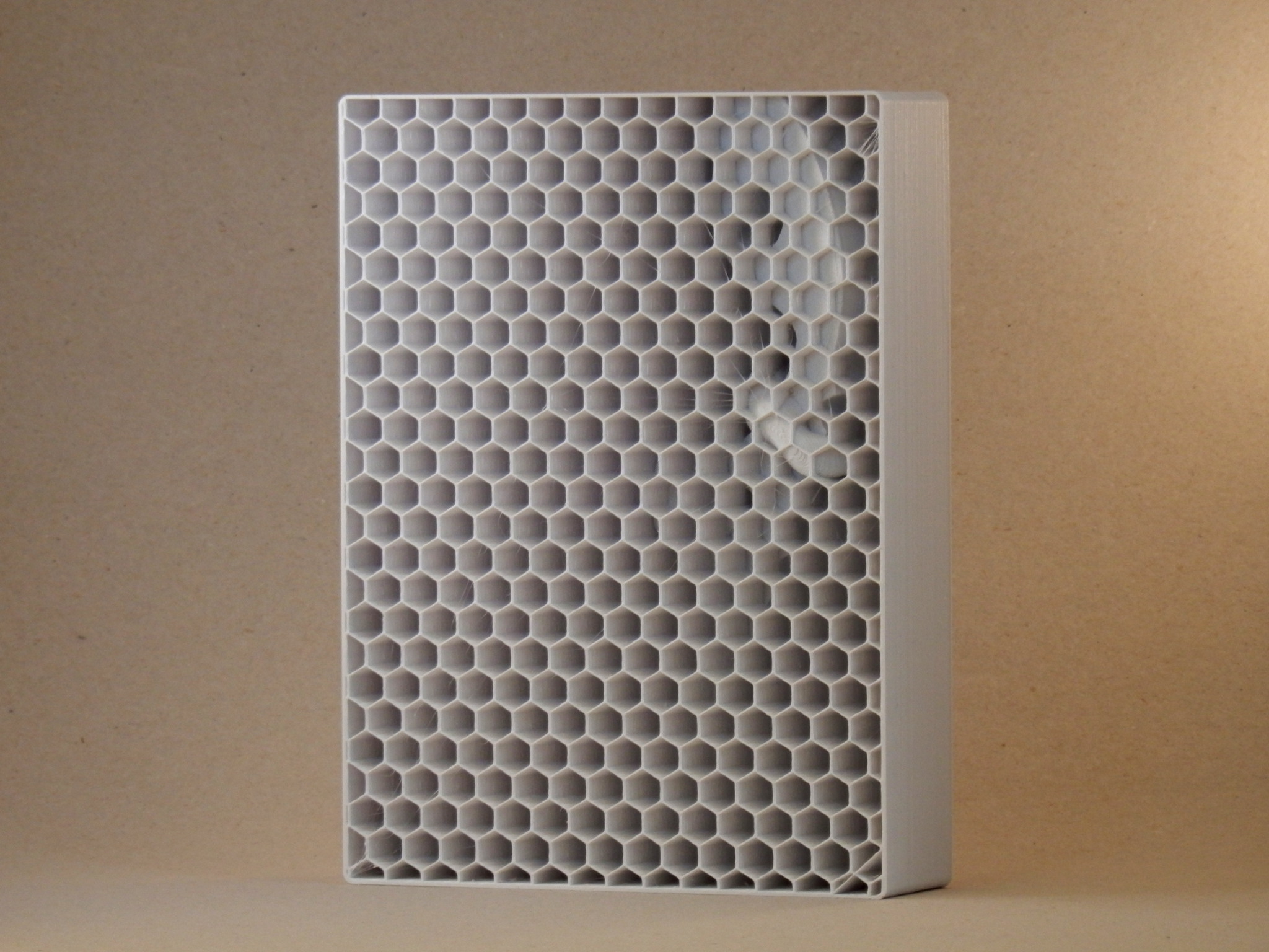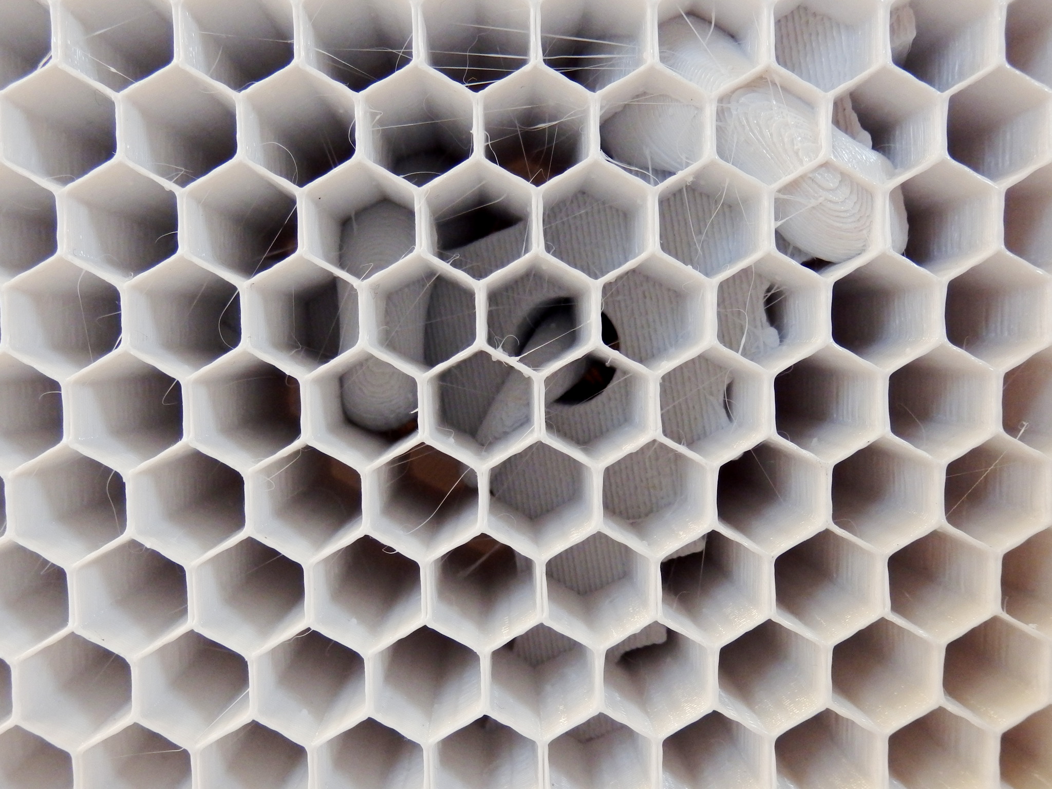 As we print objects in 3D, the printers generate a supporting structure inside the volume of every closed form. This structure is hidden from view… Who knows what phantoms we can find inside the honeycomb.