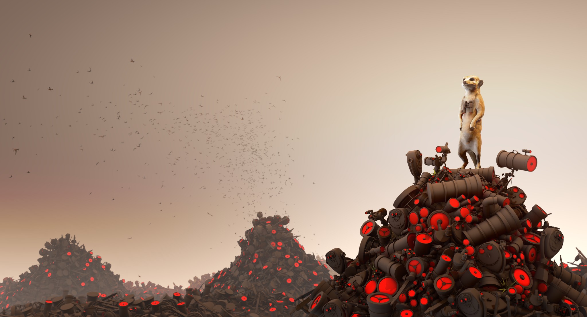 So all in all it took me more than 6 months to find the time to finish it. Im glad I did! The piece was technically challenging because it has nearly 3500 telescopes in it, and over 1000 birds in the background.
